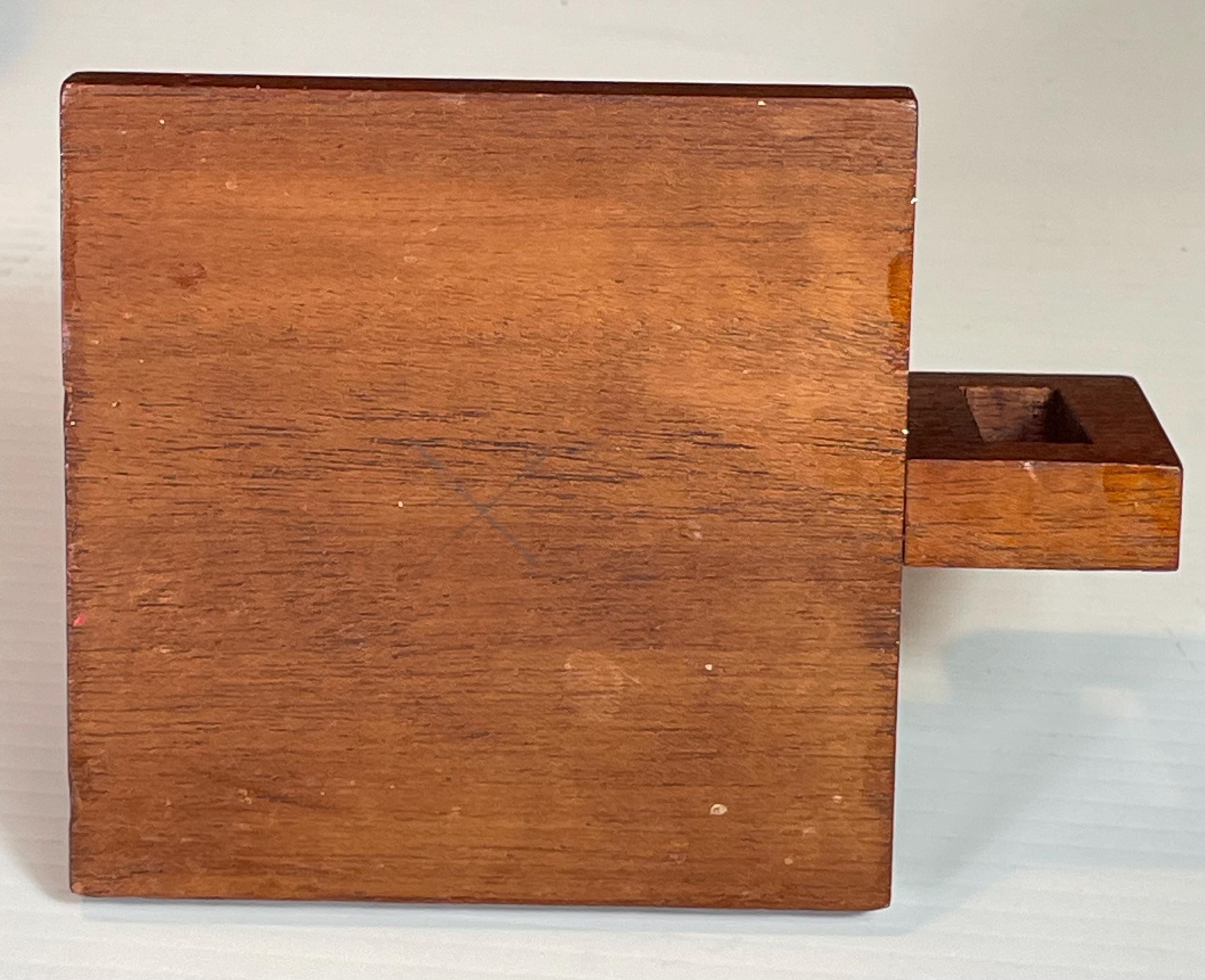 Pair of two (2), handmade, wooden candlestick holders. MCM or Arts and Crafts style, square holders have finger loops and hold taper candles.